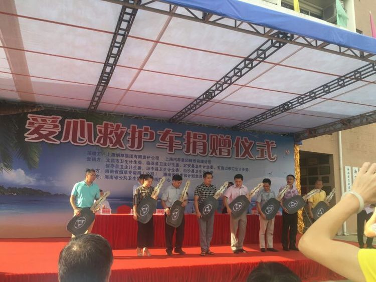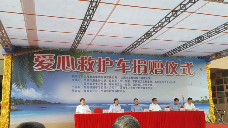 8月1日下午,上海烟草集团有限责任公司、上海汽车集团股份有限公司捐赠我省8辆监护型救护车,捐赠仪式在海口市120 急救中心举行,沈晓明省长、王路副省长、省卫生计生计生委、省发改委、省旅游委等相关部门负责人出席捐赠仪式。此次捐赠的救护车用于加强急救能力较弱的市县,尤其是5个国定贫困县急救能力建设。